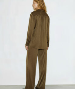 La blusa BELEN de ATAEZ es una prenda imprescindible para quienes buscan estilo, sofisticación y comodidad en un solo diseño. Confeccionada en un suave tejido de punto lurex, aporta un brillo sutil en tonos marrón con destellos dorados, destacando por su caída fluida y su tacto agradable sobre la piel.