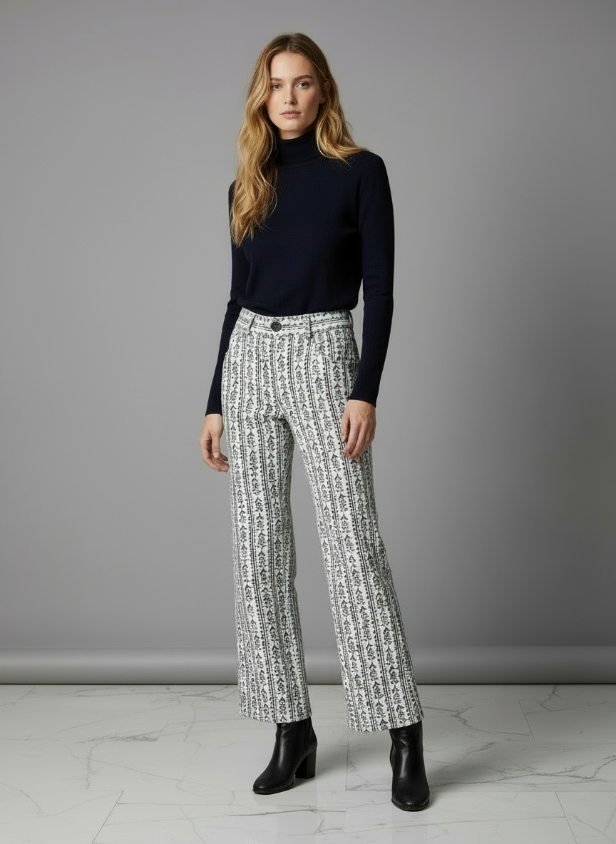 FIFI | Pantalón Jacquard Flores Mujer Crudo