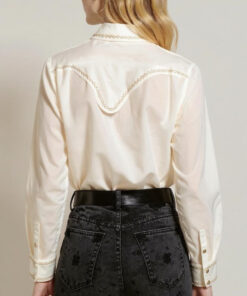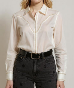 La camisa Raquel, silueta simple, pero sofisticada, es realzada por los delicados bordados que adornan el frente, la espalda y los puños, inspirados en el clásico estilo cowboy.