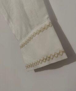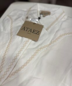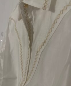 El bordado, meticulosamente realizado, añade un toque único y moderno, creando una prenda que destaca por su sencillez y su carácter.